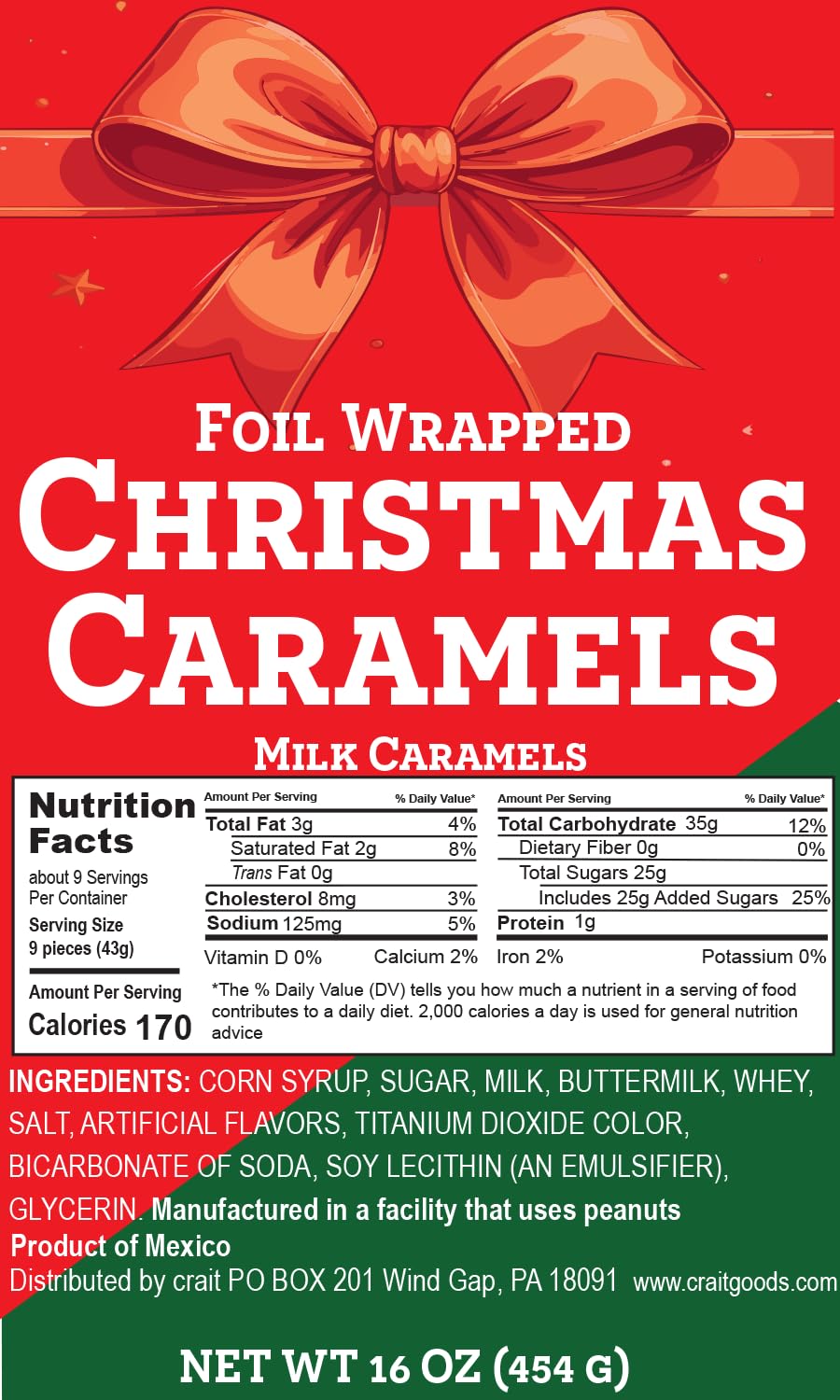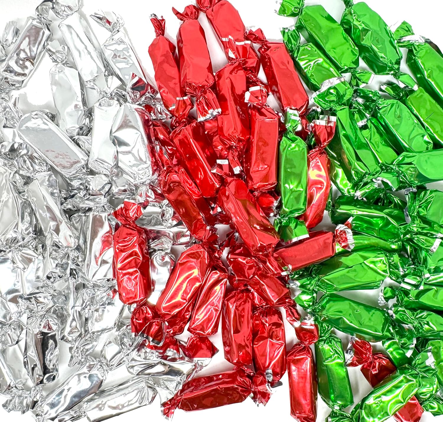 Christmas Candy Individually Wrapped Foil Wrapped Caramels Red, Green and Silver, Christmas Party Candy 16 Ounce