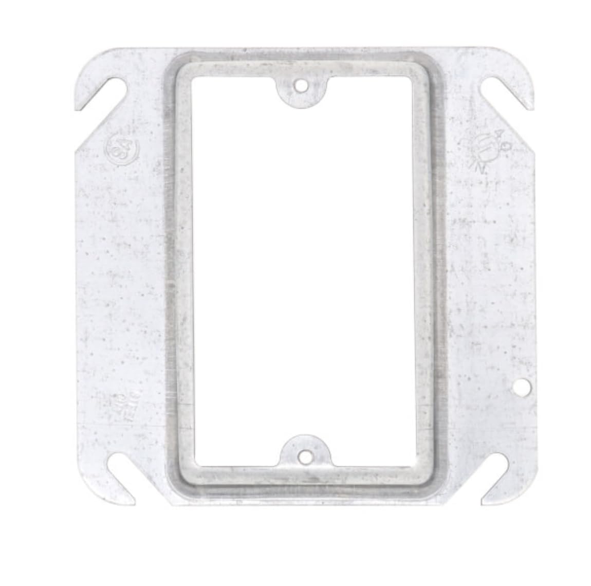 Electrical 4" x 4" box device ring 1/2" raised ring for one device. Used to make device like outlets and switches in electrical 1900 box flush with drywall or other types of wall board.