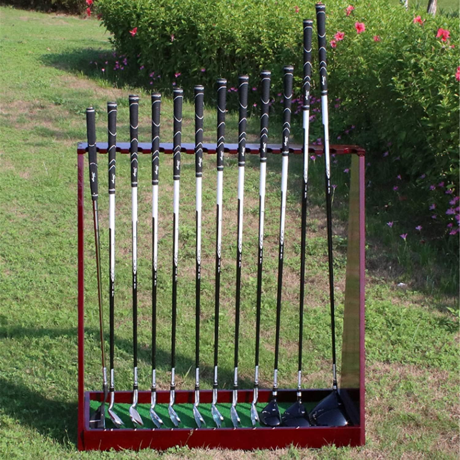 Product Description:Golf Club Display Stand Storage Rack Holder Perfect: Protect the golf club.Specification:Material: Wooden Size: 80.5x30x80.5cm/31.7"x11.8"x31.7" and Can store 13 clubs.Feature:Uses: gifts, family practice, friends learn fromCleaning method: wipe with wet cloth to remove dirtScope: balcony, courtyard, villa club, office, garden and so onPackaging:1x Golf Club Display ShelfNotice:1. The product size is purely manual measurement and there is an error of 1-2cm. It is a normal phenomenon.2. Decorative items shown in product photos are not included.3. Please be reminded that due to the light and screen difference, the item's color may be slightly different from the pictures.