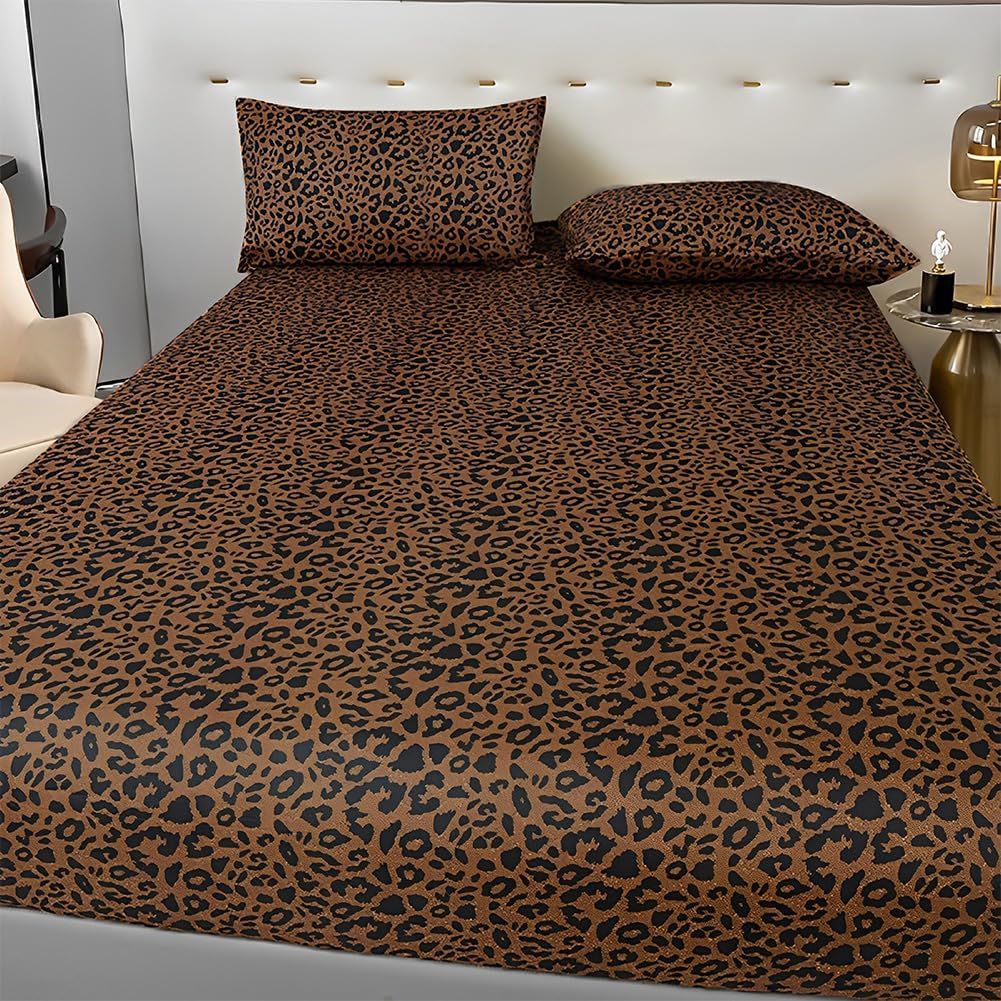 LifeTB Leopard pattern fitted sheet floral style leopard print bedding sheet cooling soft 100 remium microfiber bottom sheet with deep pocket animal cheetah printed breathable fitted sheet boho farmhouse microfiber bed sheet wrinkle free cozy soft mattress cover, easy fit leopard print bedding fitted sheet for all seasons coziness and comfort, wish you have a wonderful experience here. Material:100% Premium Microfiber Size Information Twin XL size fitted sheet measures 39" x 80" + 15" deep pocket Full size fitted sheet measures 54" x 75" + 15" deep pocket Queen size fitted sheet measures 60" x 80" + 15" deep pocket King size fitted sheet measures 78" x 80" + 15" deep pocket Package Includes Only 1 Single Fitted Sheet without Flat Sheet or Pillowcases. Care Instruction Our fitted sheet is easy to clean. Machine washable with similar colors. Tumble dry low. Do not bleach. Cool Iron when needed after wash. Recommended washing before use. If you have any question, please feel free to contact us.